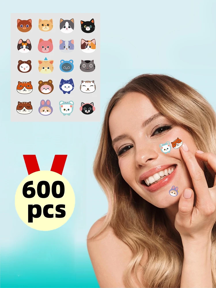 600 Pieces of Cartoon Cat Acne Patches, Facial Acne Patches,Concealer Acne patches,and Pimples Patches,Ultra-thin and Breathab