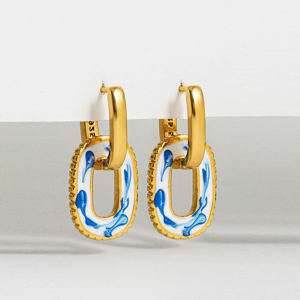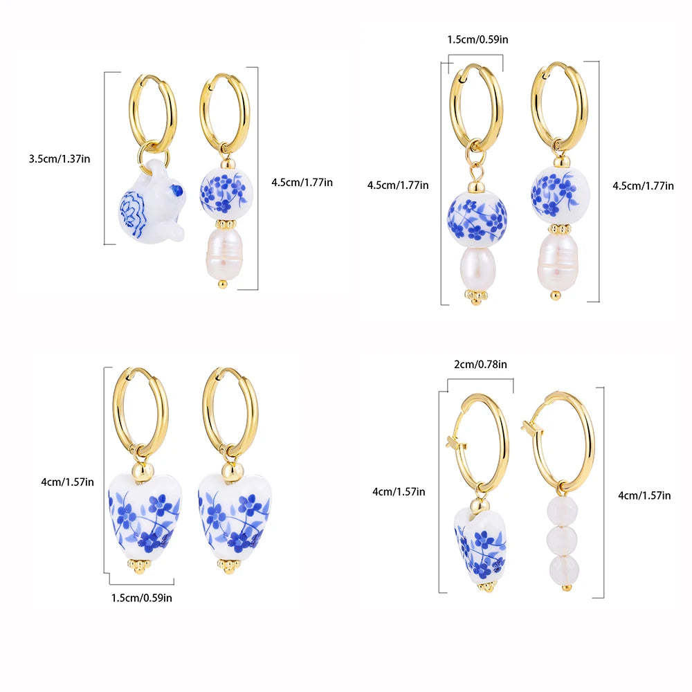 Asymmetric Ceramic Flower & Pearl Hoop Earrings