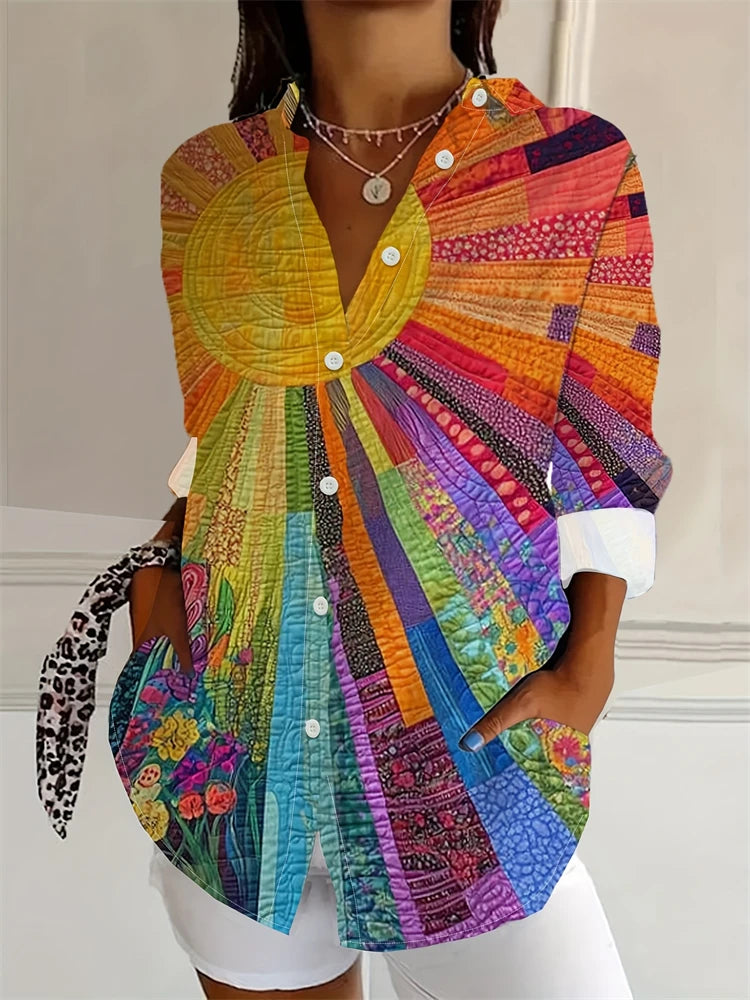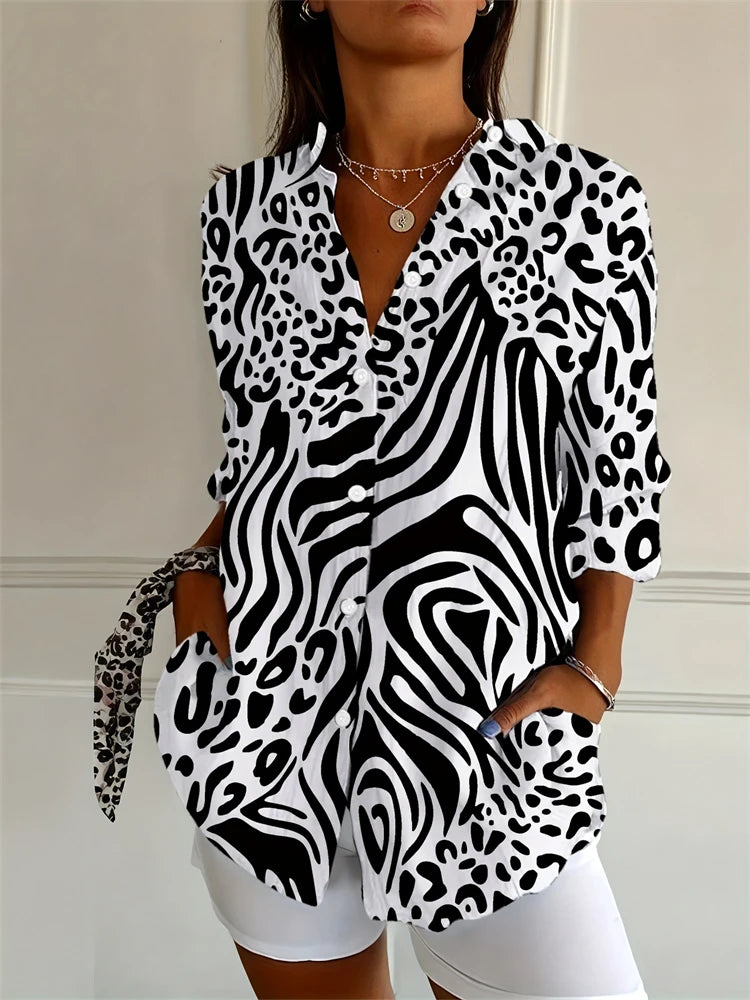 Striped Button-Down Shirt - Long Sleeve Casual Blouse