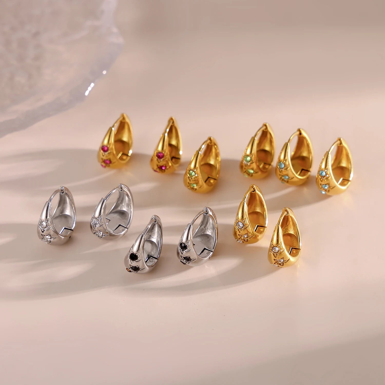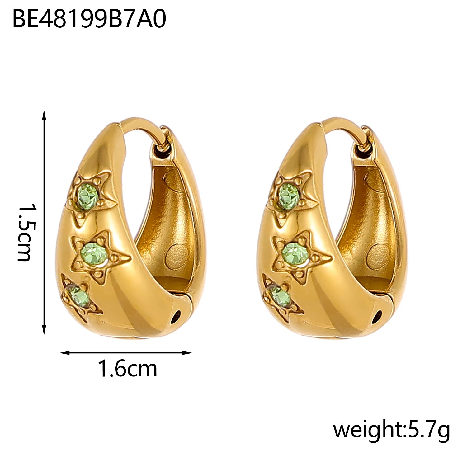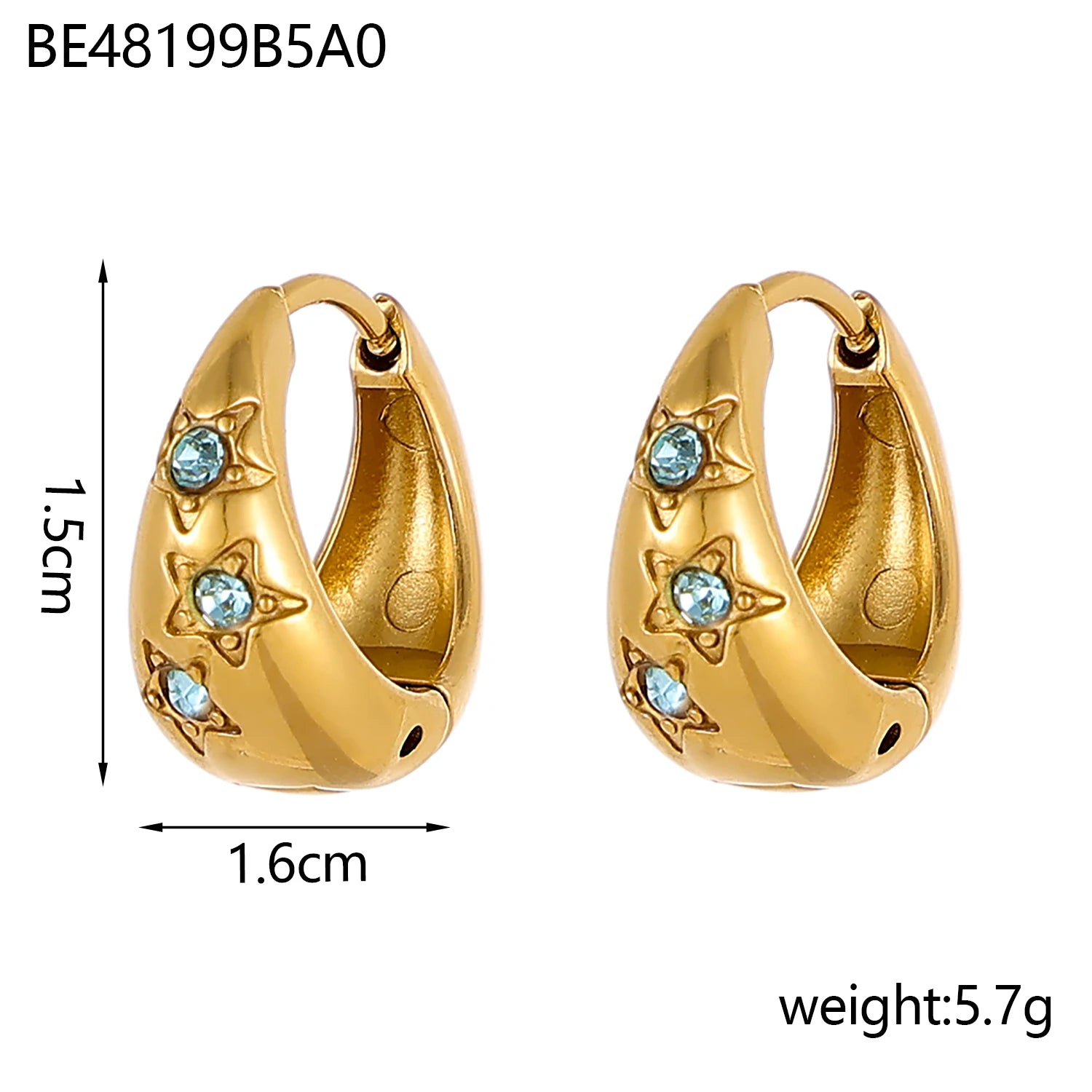 These stunning hoop earrings feature a simple yet sophisticated retro design with high-grade stainless steel construction and luxurious gold plating. Multiple sparkling zirconia stones add brilliant accents that catch the light beautifully.
