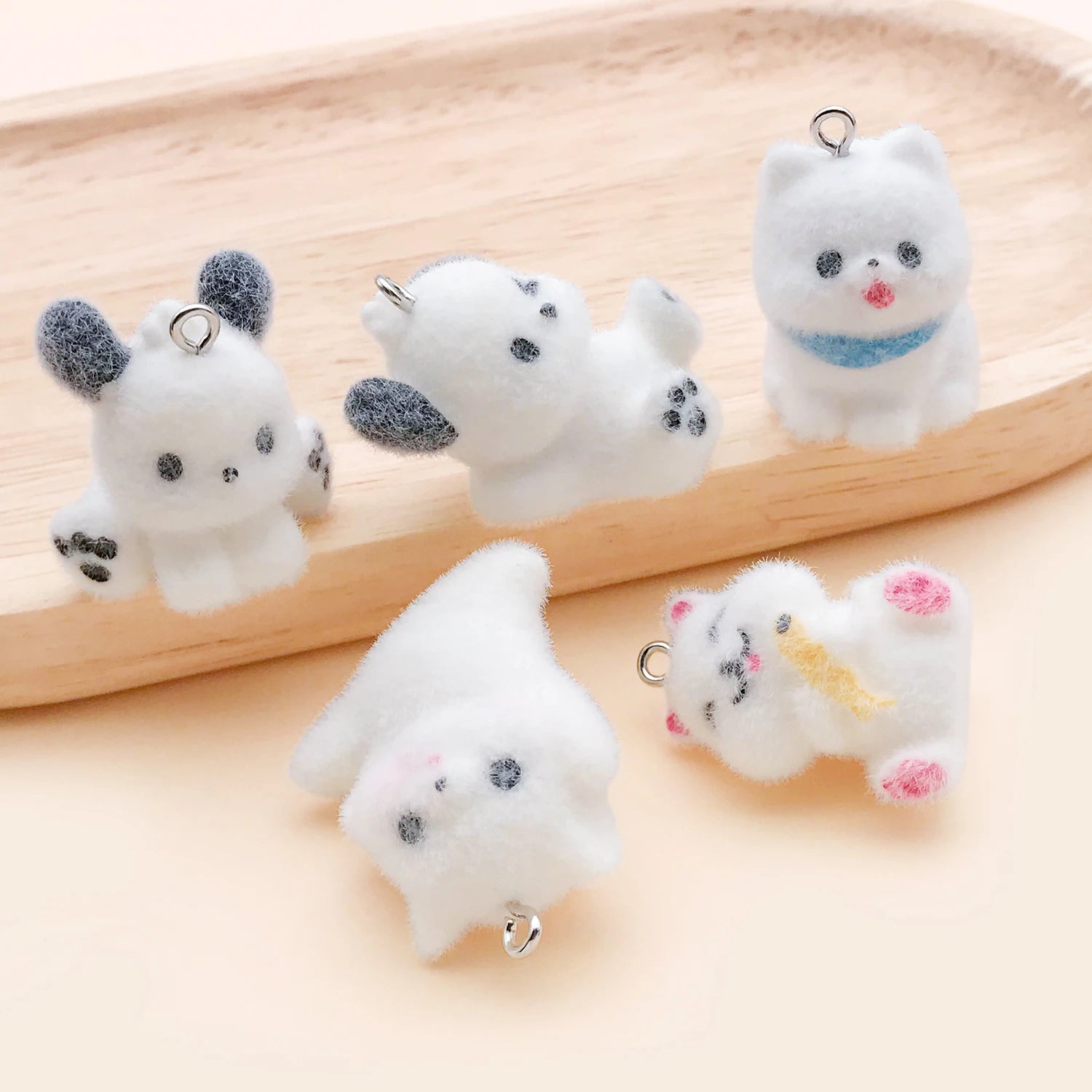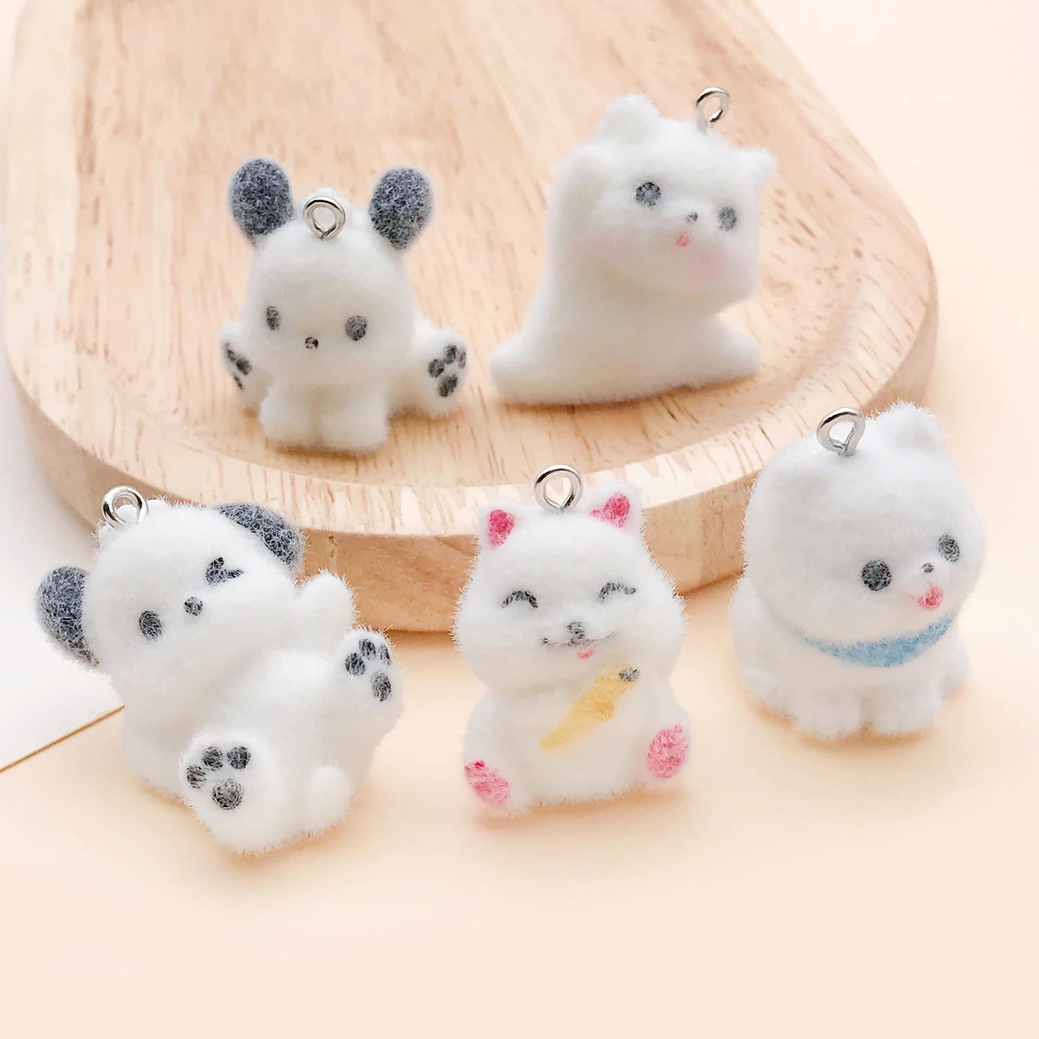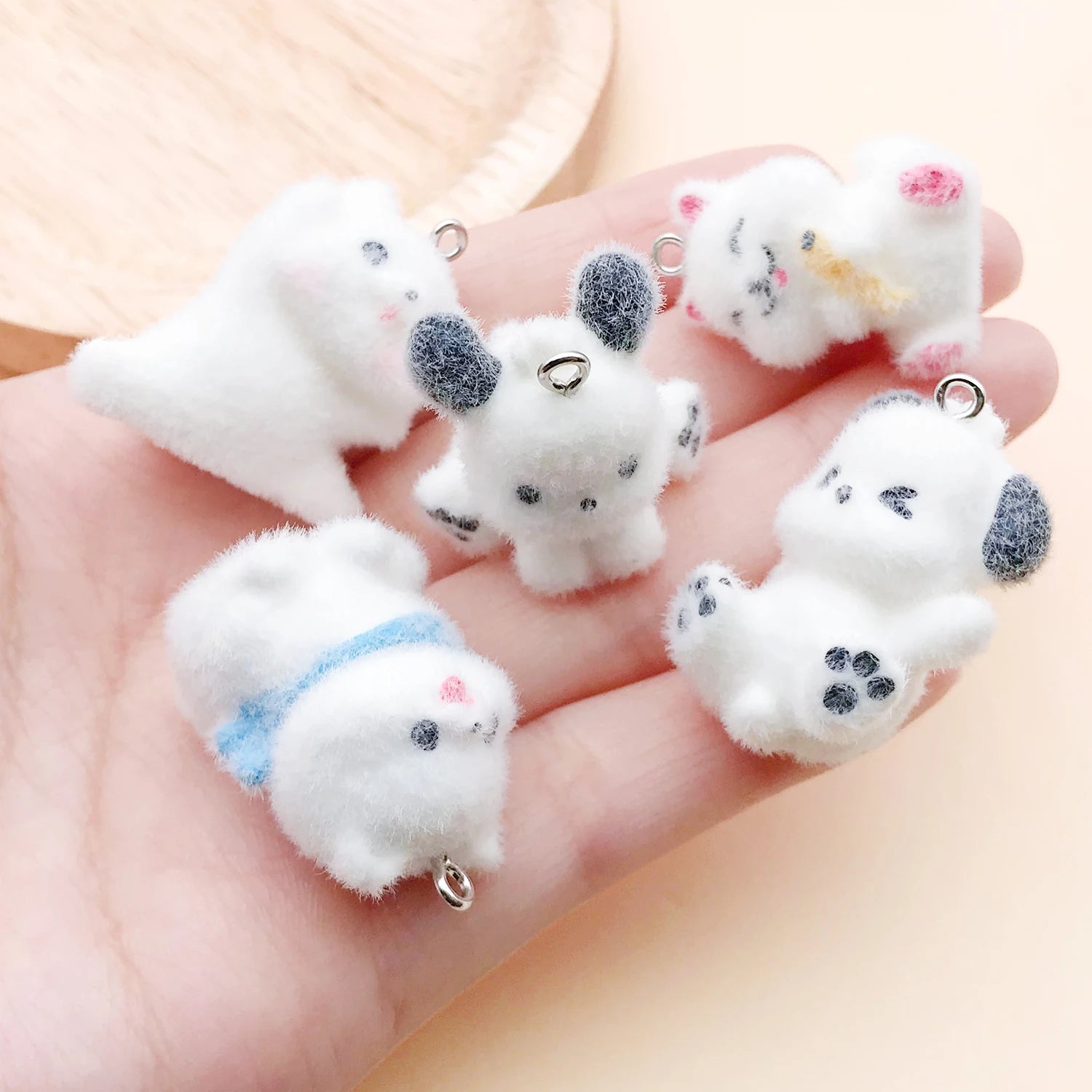 These charming resin flocking animal charms feature an irresistibly soft, fuzzy texture that makes them stand out. Perfect for DIY jewelry making, these puppy pendants add a cute, tactile element to necklaces, earrings, keychains, and more.