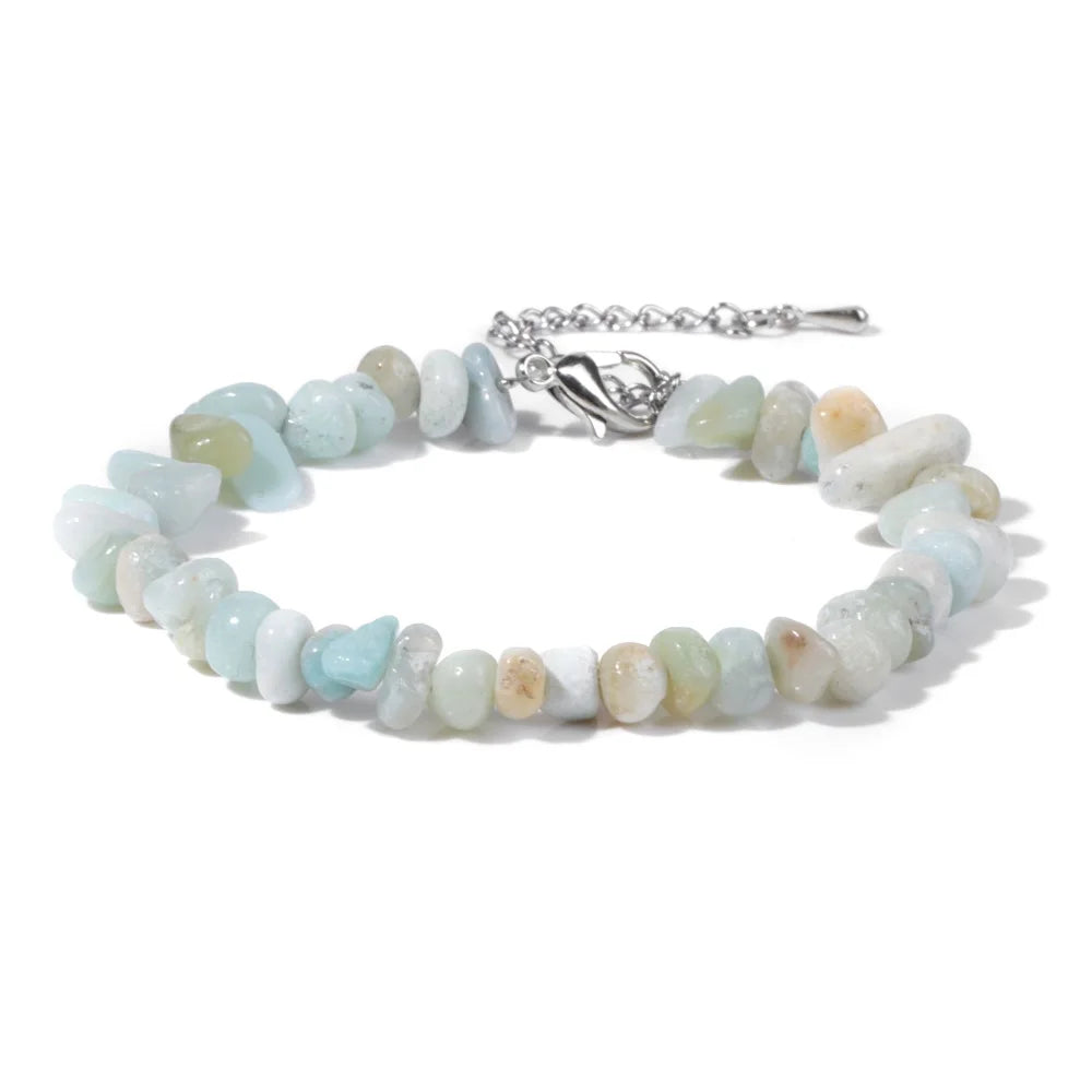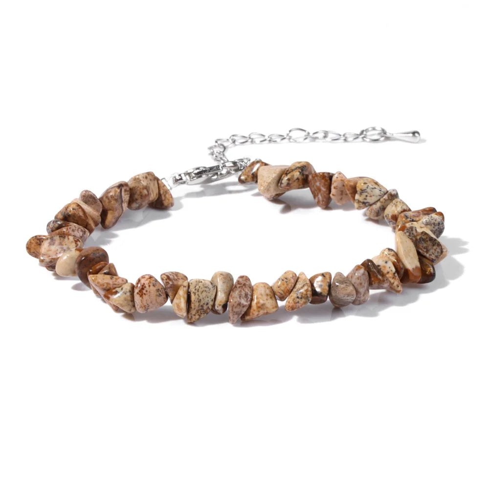 The irregular chip bead design creates an organic, bohemian aesthetic that complements any style. Lightweight and comfortable for all-day wear, this bracelet adds a natural touch to both casual and dressy outfits.