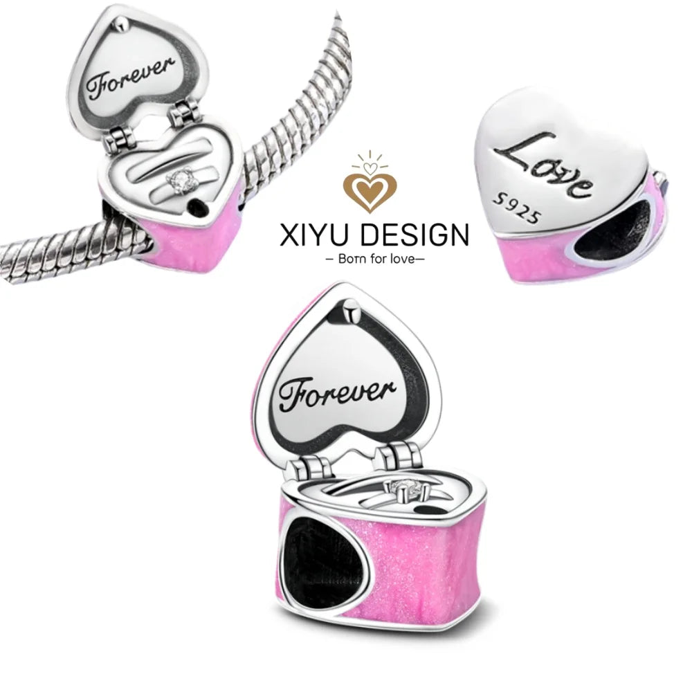 This enchanting 925 sterling silver charm features a delicate love heart design with an opening ring box motif, symbolizing eternal love and commitment. Perfect for celebrating Valentine's Day, weddings, anniversaries, and special romantic moments.